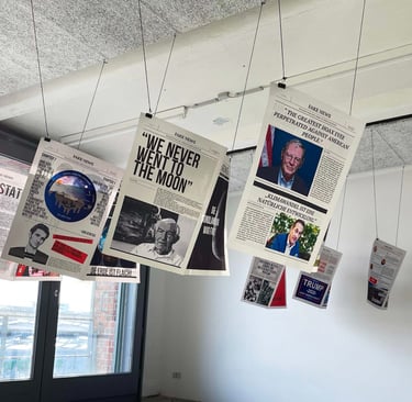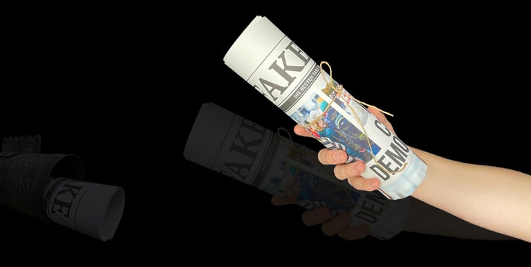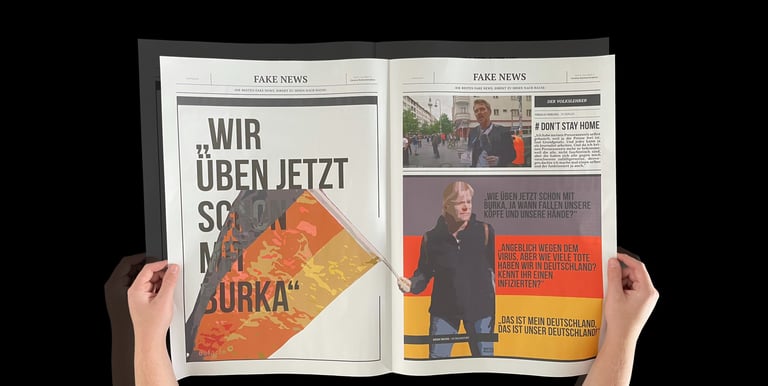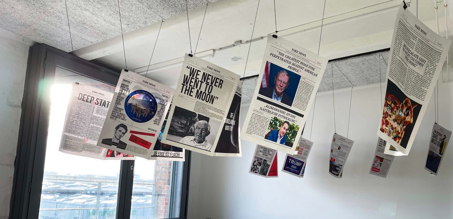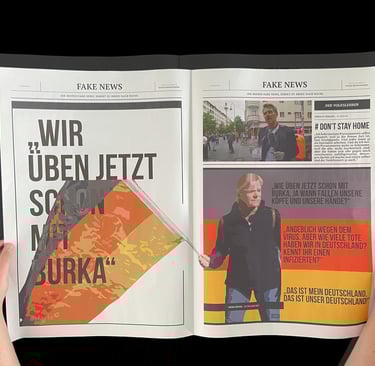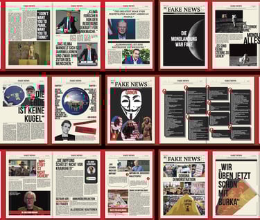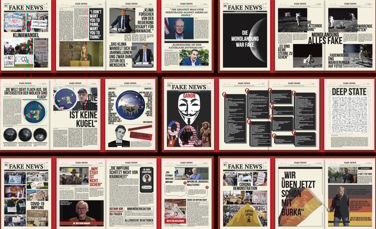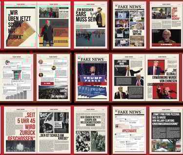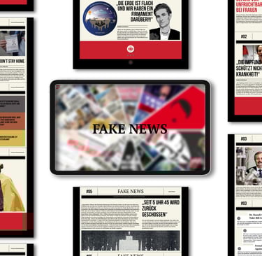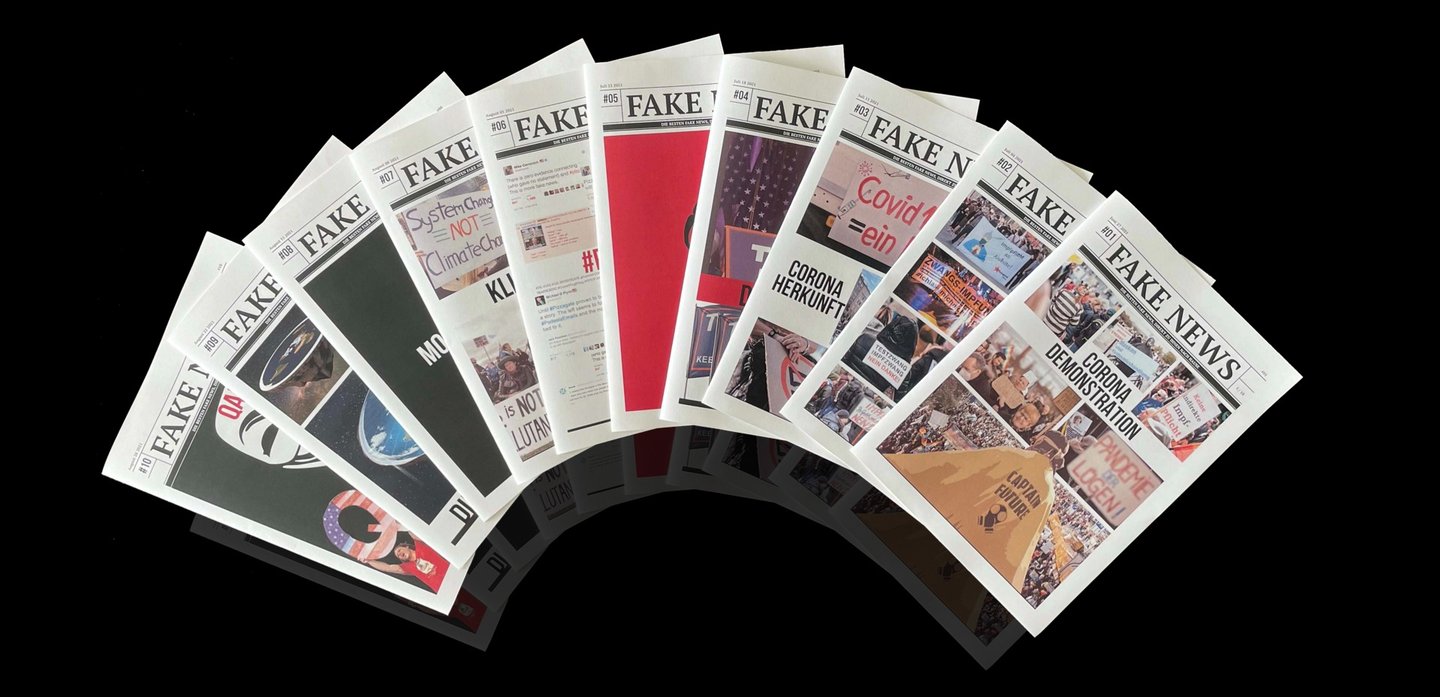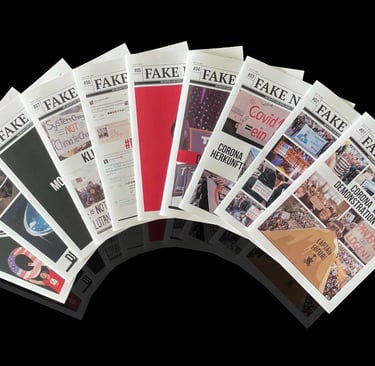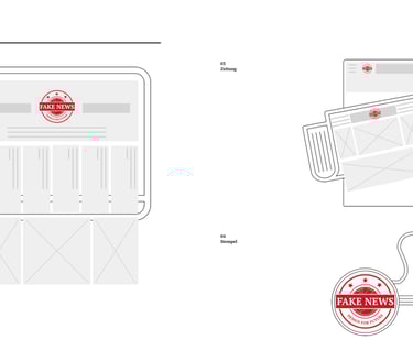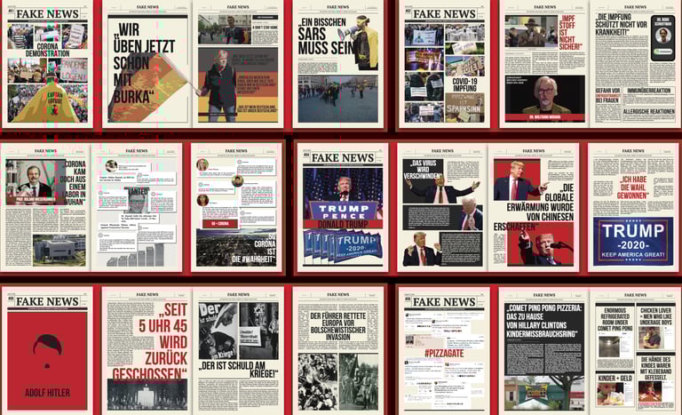 I set out to research this issue for my Master's thesis, and as I learned more about fake news, I had a bold idea: why not fight fire with fire? So I created the Fake News Press, which collects the most talked about fake information on the internet and republishes it in different media, such as large format newspapers and websites. This way, the line between information and fake news becomes clear again. And the act of stamping separates fake news more clearly from other information: these are certified fake news.
