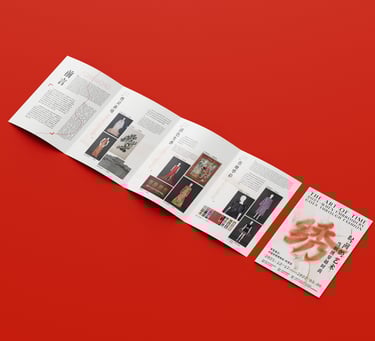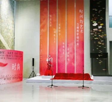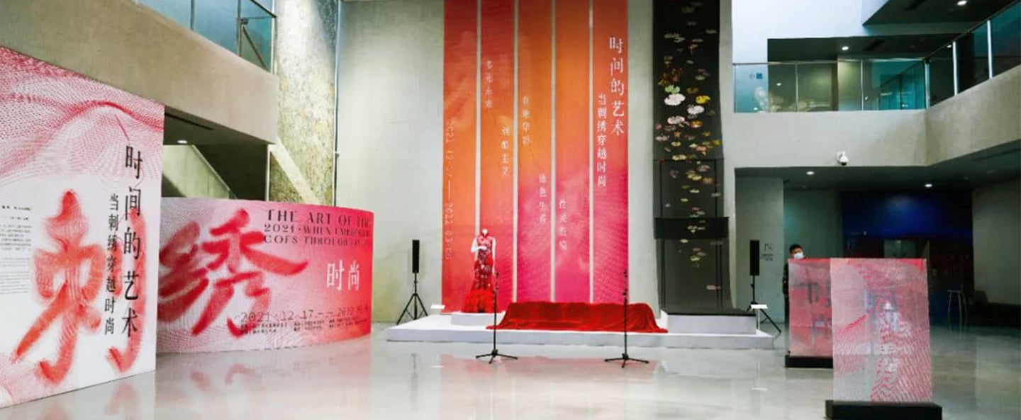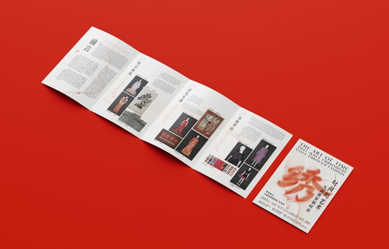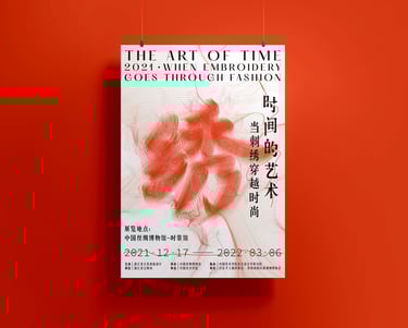 This is a visual design for an embroidery exhibition in a Chinese museum. It mainly includes poster design, banner design and flyer design. The whole visual style idea refers to the technique of embroidery. Embroidery is a traditional Chinese craft in which the needle and thread are passed back and forth between the front and back of the fabric. We digitised this feature so that the coloured lines run back and forth between the front and back of the screen, giving the impression that the characters are tattooed onto the screen.